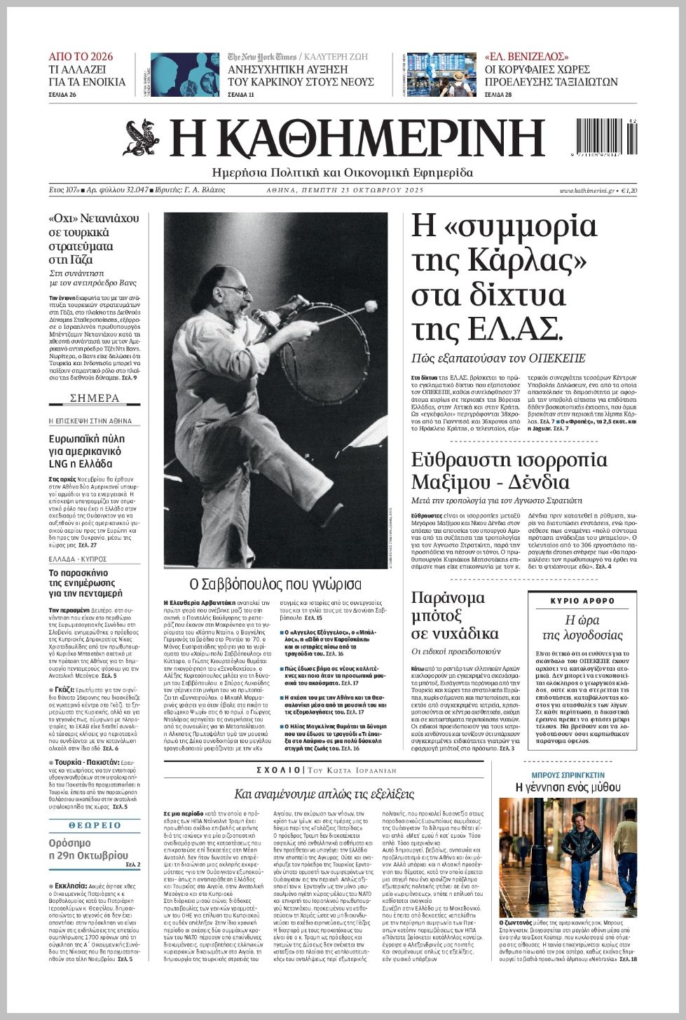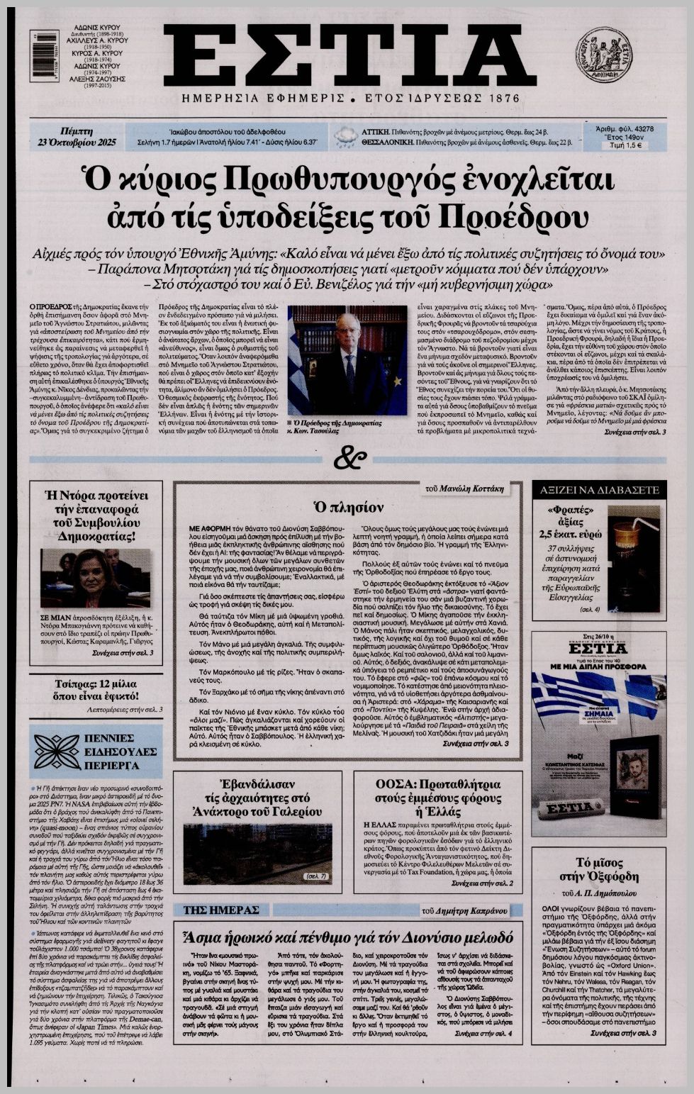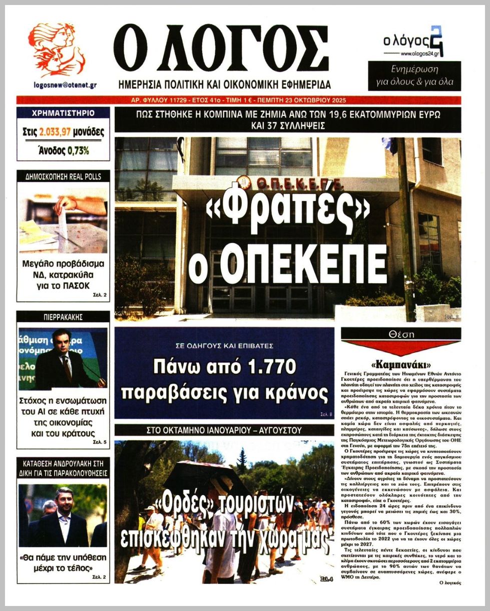 Τα πρωτοσέλιδα της Πέμπτης (23/10) σε Κρήτη και Αθήνα