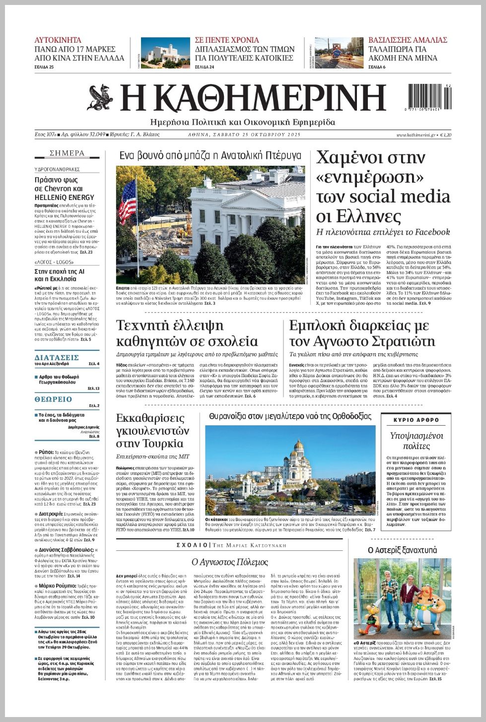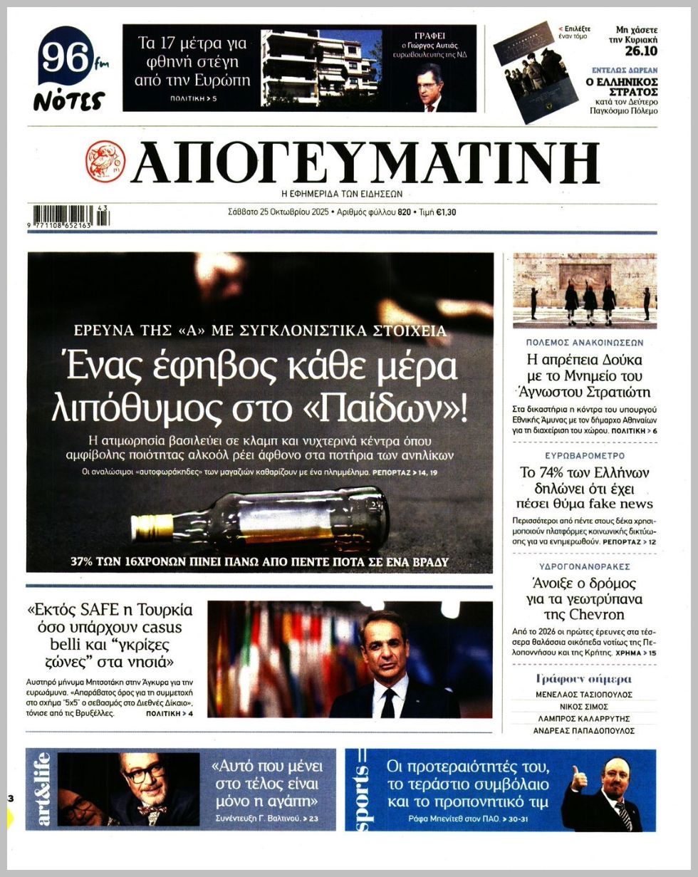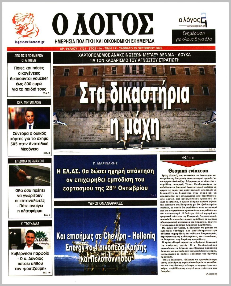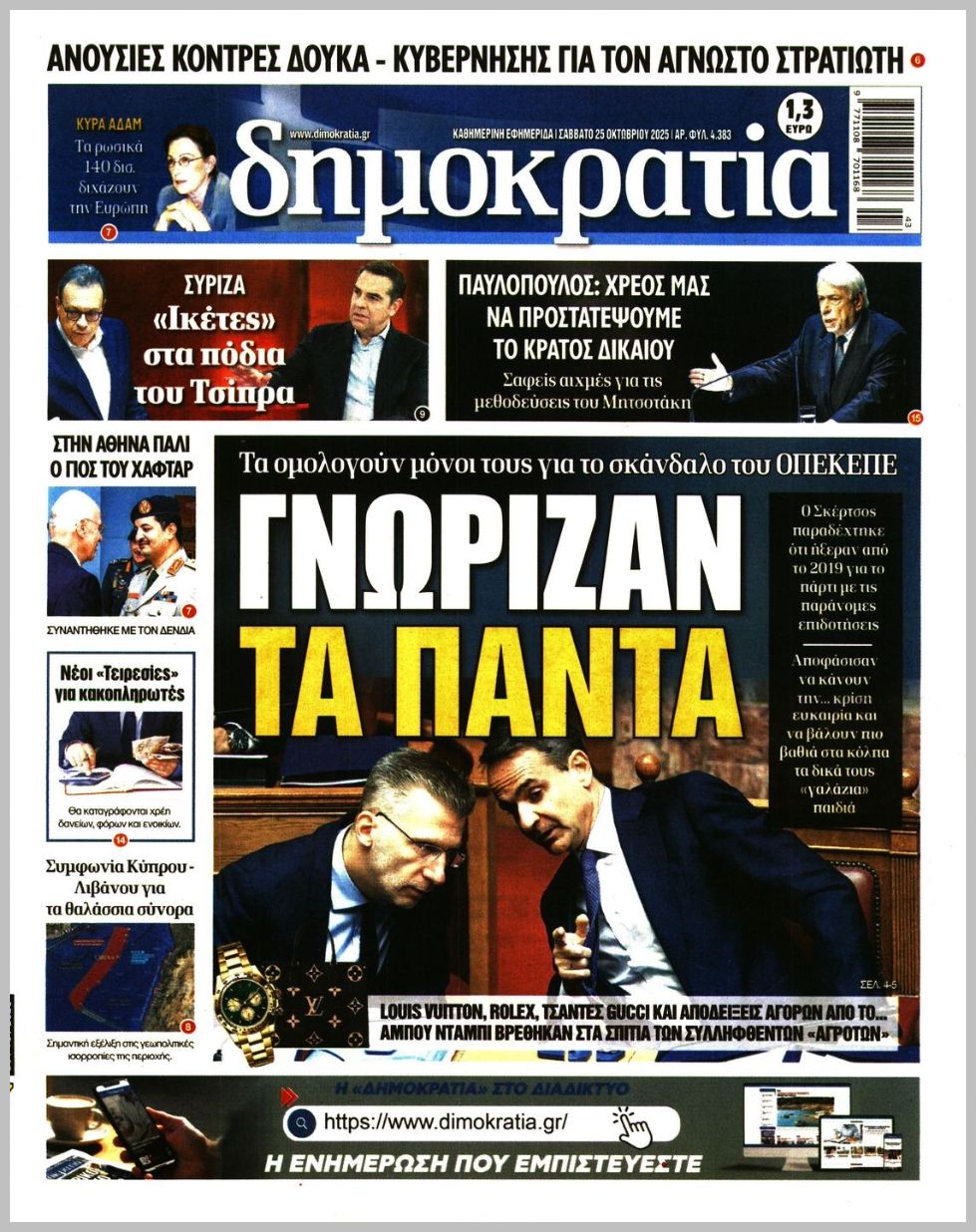 Τα πρωτοσέλιδα του Σαββάτου (25/10) σε Κρήτη και Αθήνα