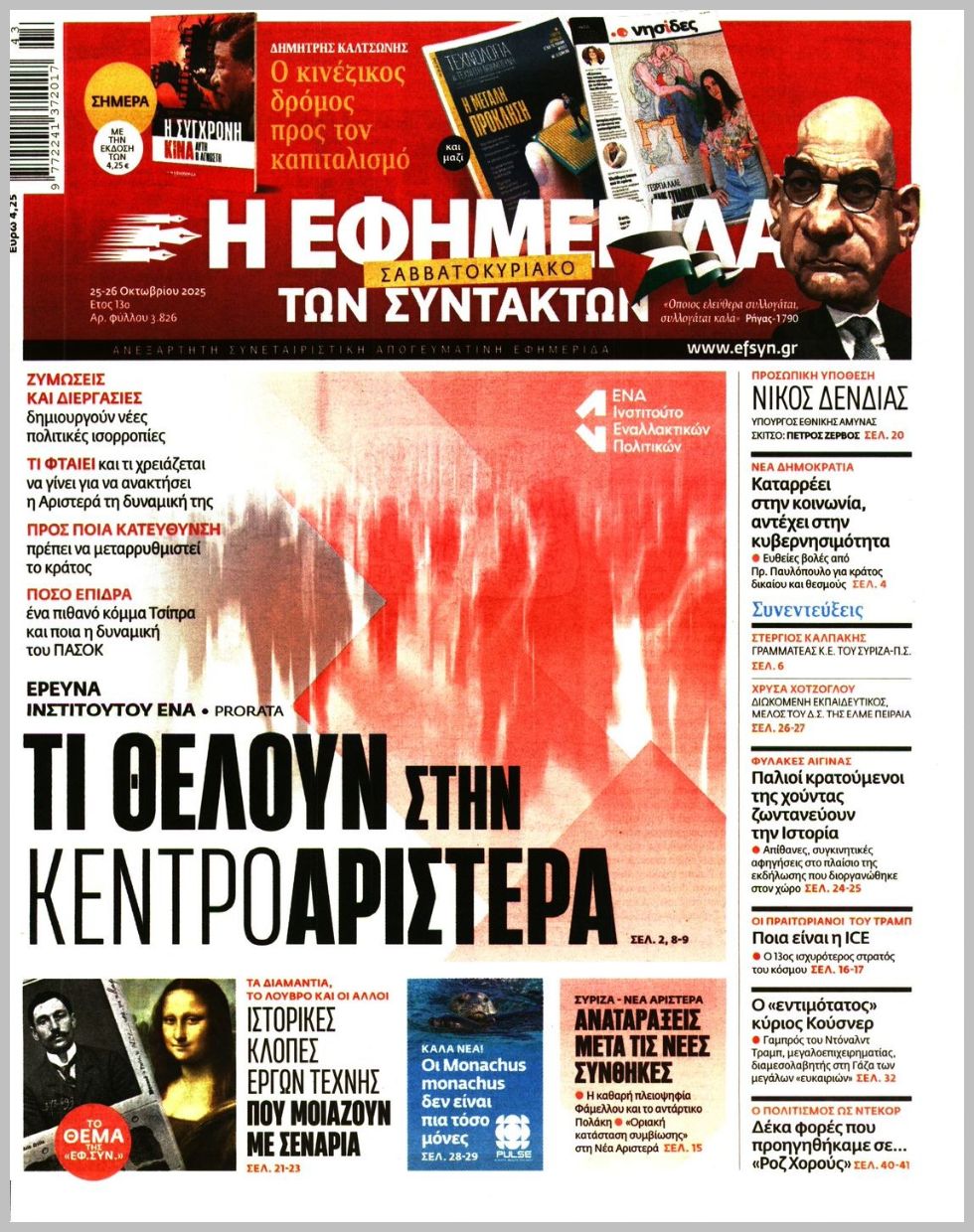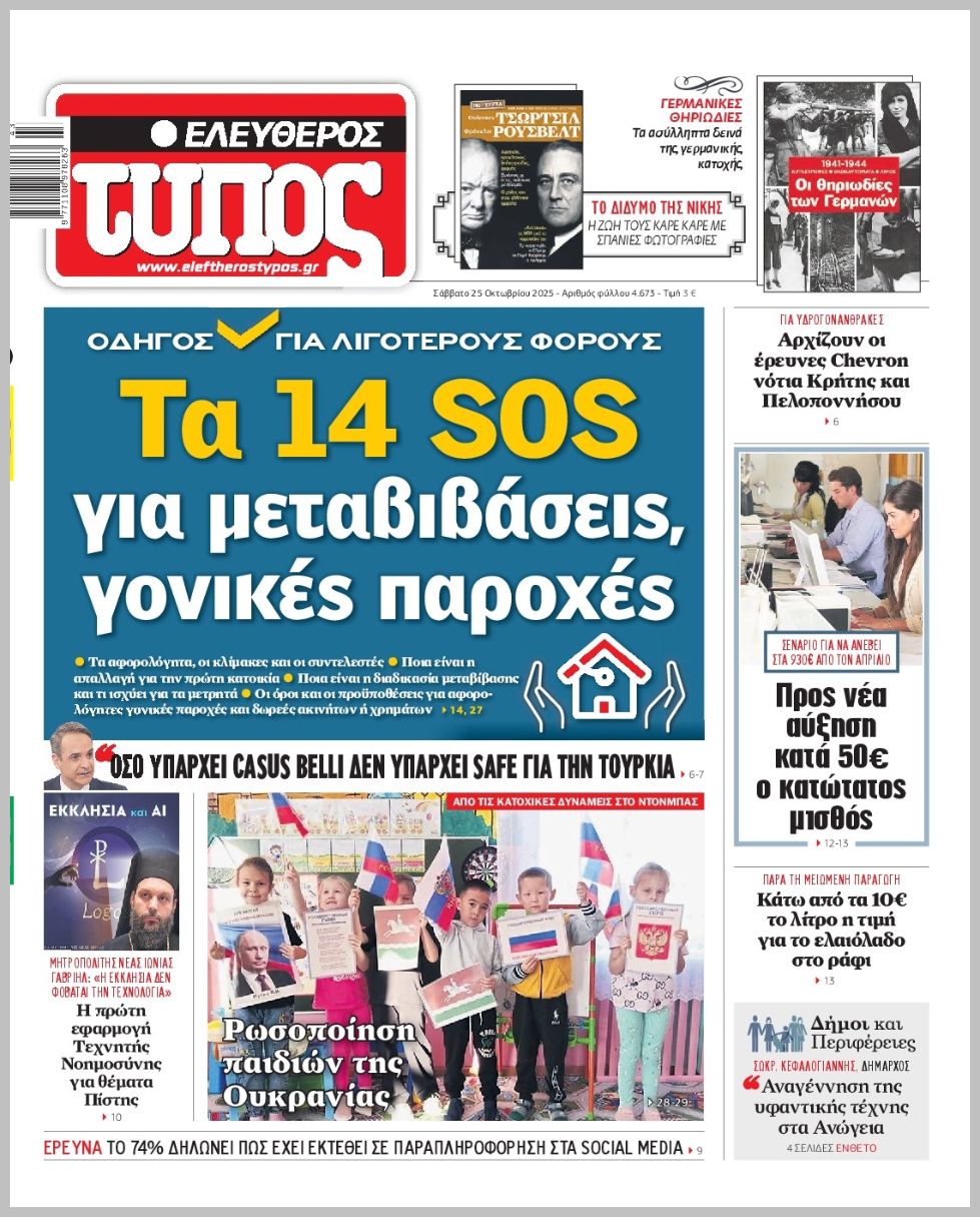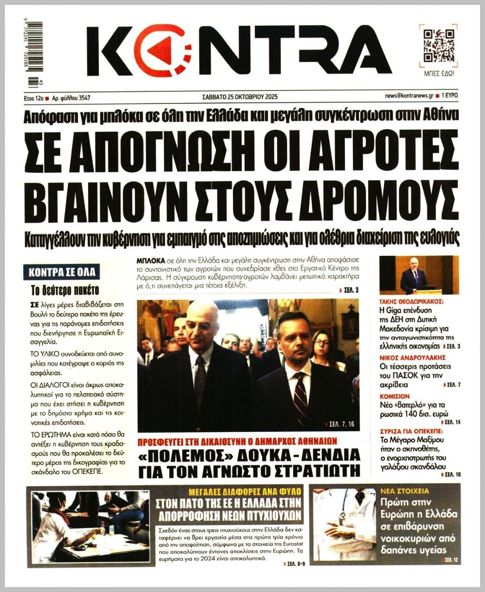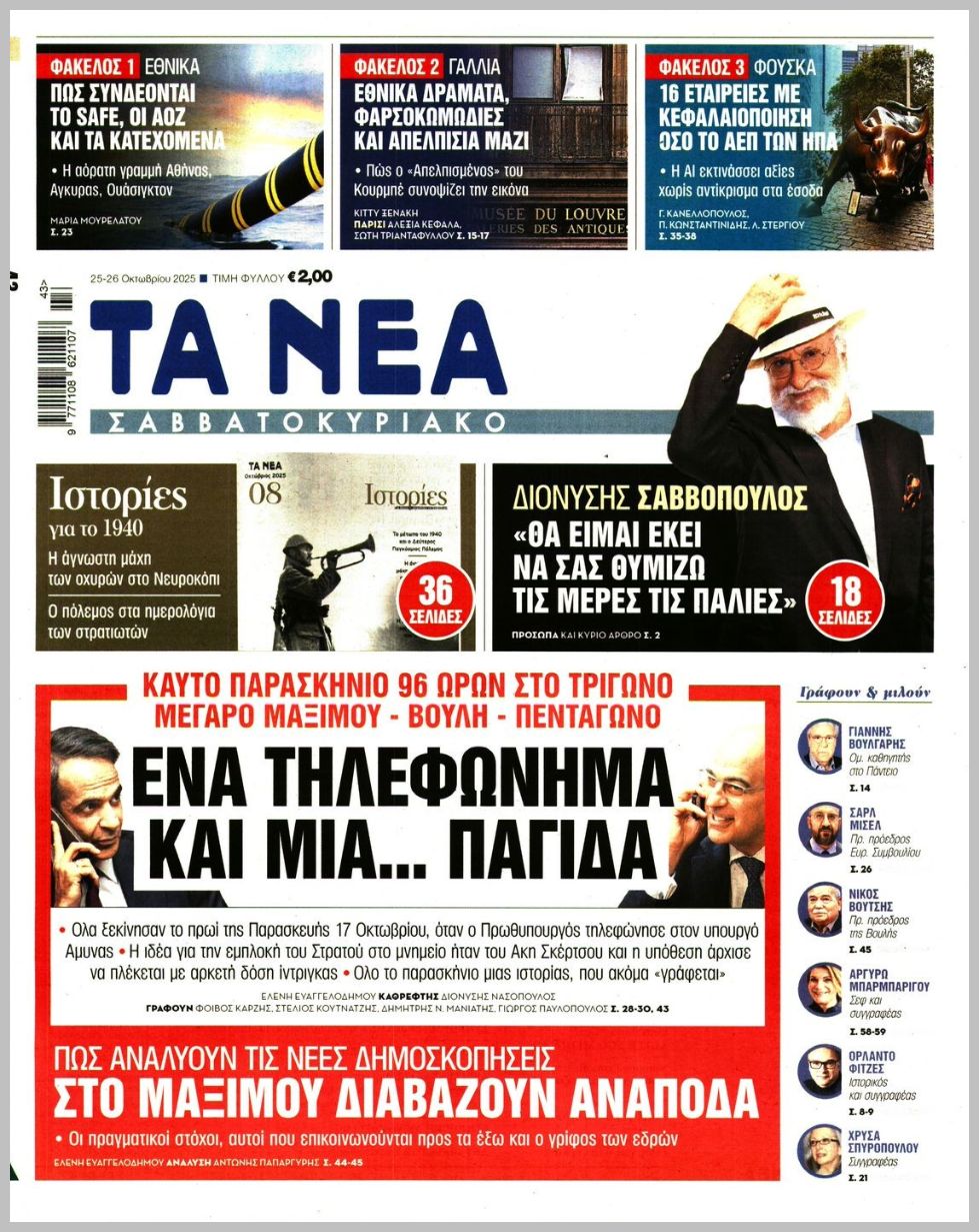 Τα πρωτοσέλιδα του Σαββάτου (25/10) σε Κρήτη και Αθήνα