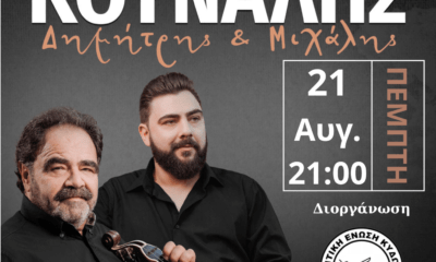Μια μοναδική βραδιά διοργανώνει απόψε το βράδυ η Αθλητική Ένωση Κυδωνίας με το συγκρότημα των Δημήτρη και Μιχάλη Κουνάλη Στην περιηγητική λέσχη Σκινέ, σε ένα...