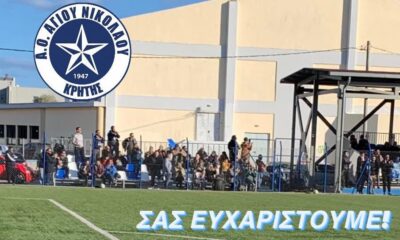 Η ομάδα του Αγίου Νικολάου ευχαρίστησε το κόσμο της για την παρουσία του στη Σούδα στο ματς μεταξύ του Άρη που ο ΑΟΑΝ επικράτησε με 1-0...
