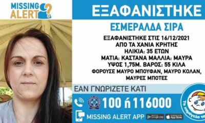 Η 35χρονη Εσμεράλδα Σίρα 35 ετών εξαφανίστηκε από περιοχή των Χανίων. Τα ίχνη της νεαρής γυναίκας χάθηκαν από προχτές Πέμπτη. Το Χαμόγελο του Παιδιού, προχώρησε στη...