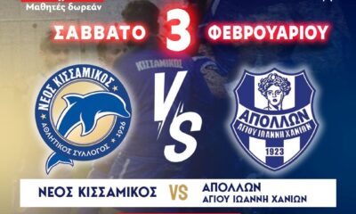 Ο Νέος Κισσαμικός ανακοίνωσε πως θα διαθέσει τα έσοδα από τα εισιτήρια του ντέρμπι με τον Απόλλωνα στον παλαίμαχο ποδοσφαιριστή Βαγγέλη Παγωνάκη. Η διοίκηση του...