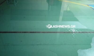 Με την πρώτη βροχή γέμισε νερά το κλειστό γυμναστήριο στο ΕΠΑΛ Ακρωτηρίου | pics
